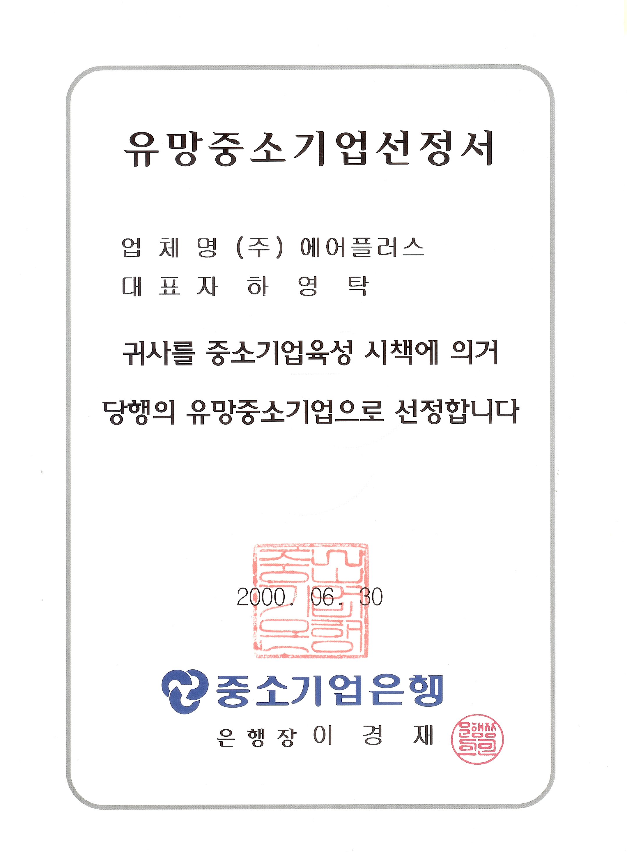 유망중소기업선정서