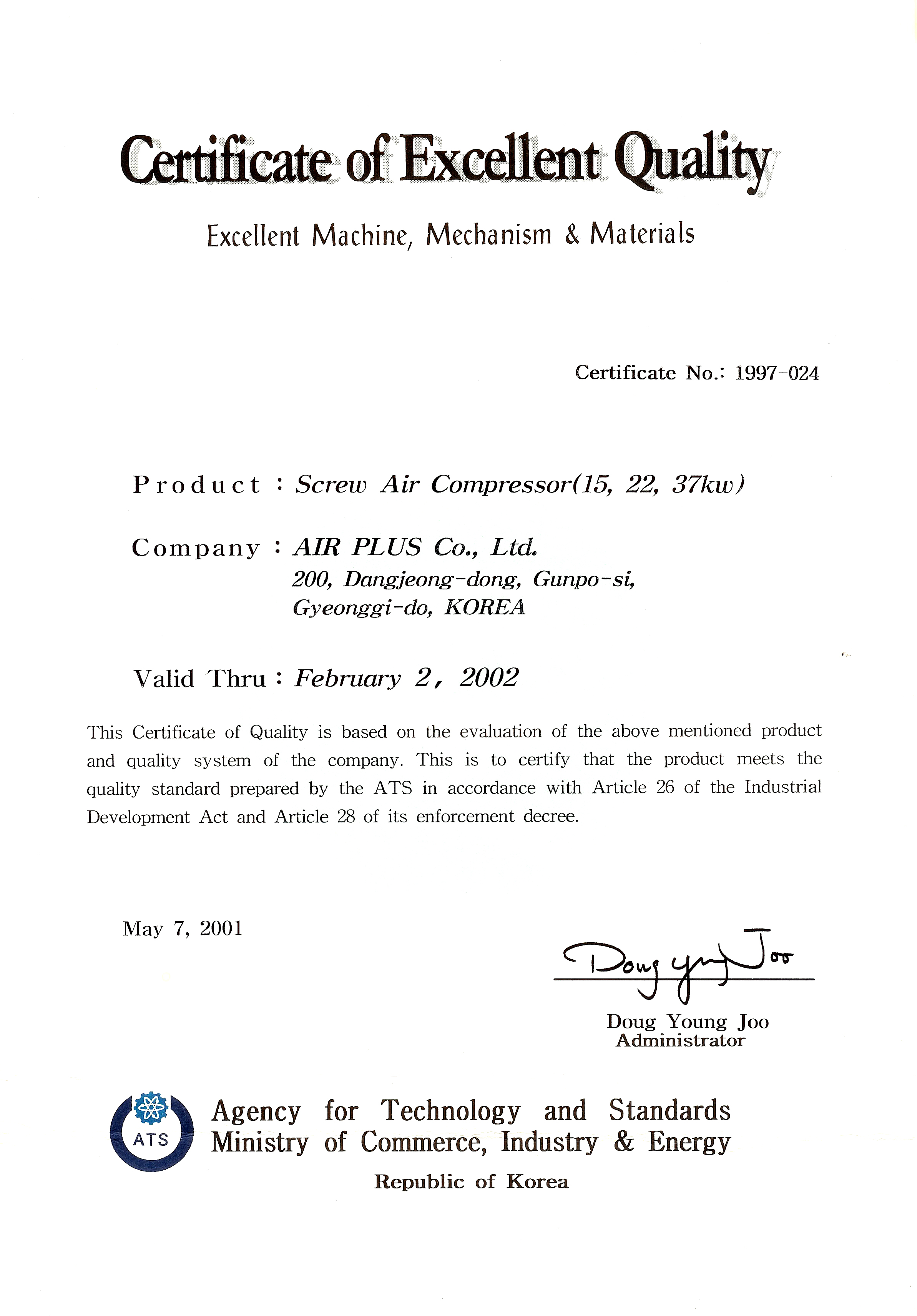 Certificate No. 1997-024