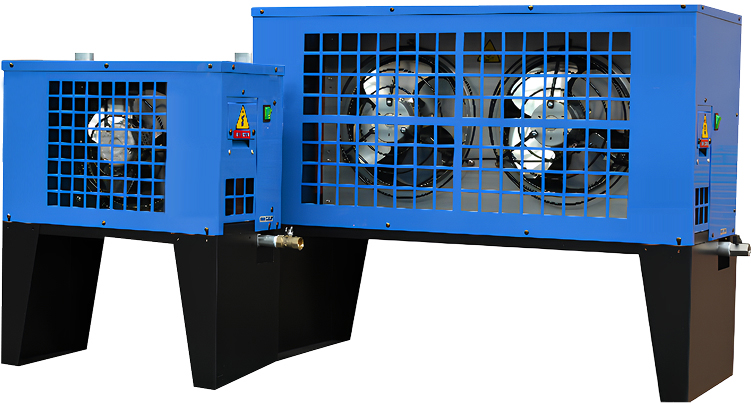 애프터 쿨러는 공기압축기에서 토출된 고온의 압축공기를 냉각시켜 응축수를 배출시키고, 냉동식 드라이어나 흡착식 드라이어의 부하를 감소시켜 제습성을 향상시키는 보조 냉각장치입니다.