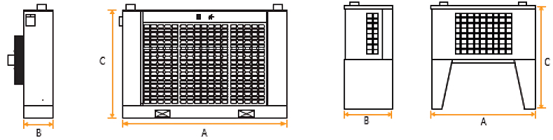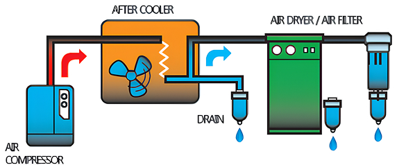 Aftercooler is cooling-down the hot compressed air at first and condensed water to be drained. The Cooled air from Aftercooler will flow into Refrigerated air dryer or Desiccant Dryer,which will improve the efficency of dryer remarkably.